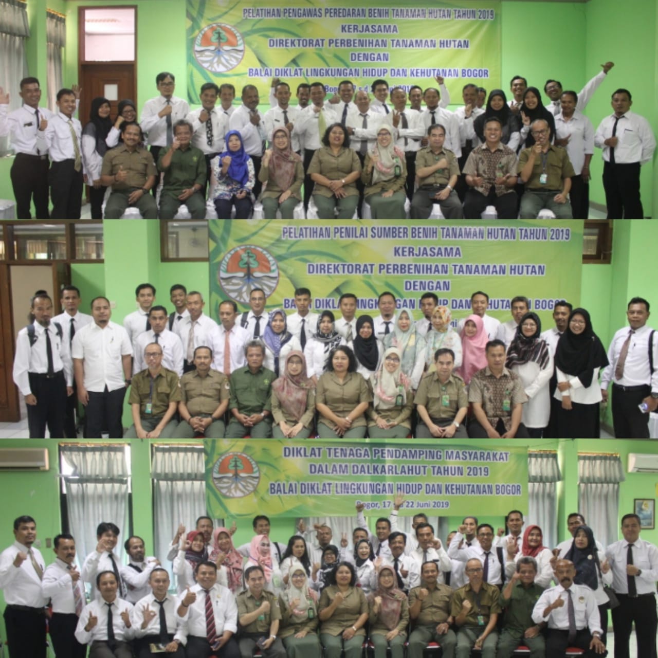 Ketiga diklat ini dilaksanakan dengan waktu pelaksanaan yang berbeda. Untuk Diklat Tenaga Pendamping Masyarakat Dalkarlahut mulai tanggal 17 Juni s.d 22 Juni 2019 dengan jumlah 6 hari pelaksanaan dan jumlah peserta 30 orang, Diklat Penilai Sumber Benih mulai tanggal 17 Juni s.d 26 Juni 2019 dengan jumlah 10 hari pelaksanaan dan jumlah peserta 30 orang dan untuk Diklat Kerjasama Pengawasan Peredaran Benih Tanaman Hutan mulai tanggal 17 Juni s.d 27 Juni 2019 dengan jumlah 11 hari pelaksanaan dan jumlah peserta 29 orang.
